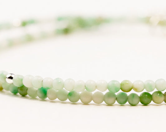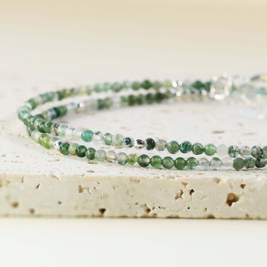 Moss Agate 2mm Round Beaded Choker, Bracelet, Natural Gemstones