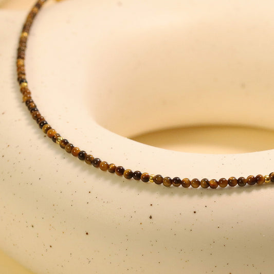 Tiger's Eye 2mm Round Beaded Choker, Bracelet, Natural Gemstones