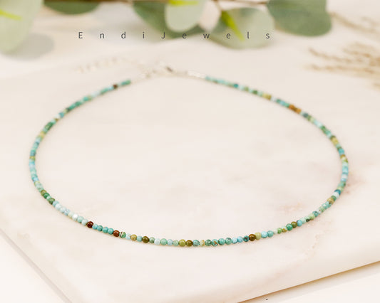 Hubei Turquoise 2mm Round Beaded Choker, Natural Gemstones