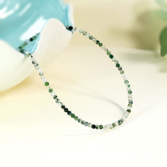 Grass Agate 3mm Faceted Beaded Choker, Bracelet, Natural Gemstones