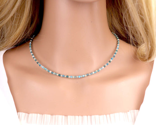 Amazonite and Apatite Crystal 3mm Faceted Beaded Choker, Bracelet, Natural Blue Gemstones
