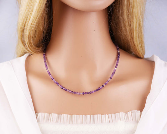 Amethyst 3mm Faceted Beaded Choker, Bracelet, Natural Gemstones