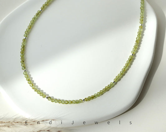 Peridot 3mm Faceted Beaded Choker, Bracelet, Natural Gemstones