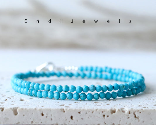 Blue Turquoise 3mm Faceted Beaded Choker, Bracelet, Natural Gemstones
