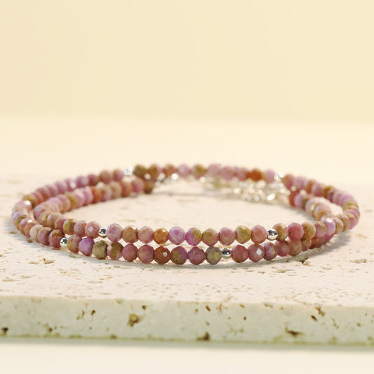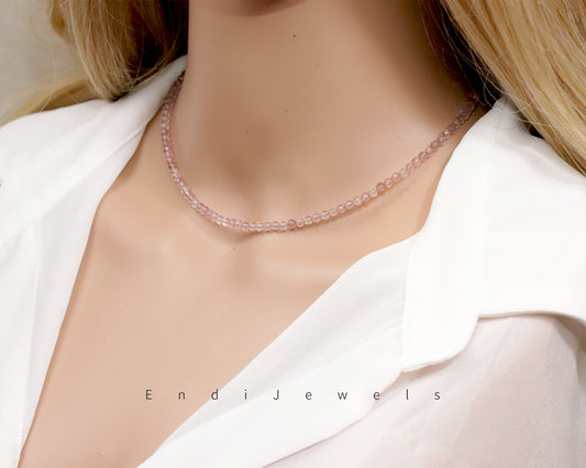 Strawberry Quartz 3mm Faceted Beaded Choker, Bracelet, Natural Gemstones