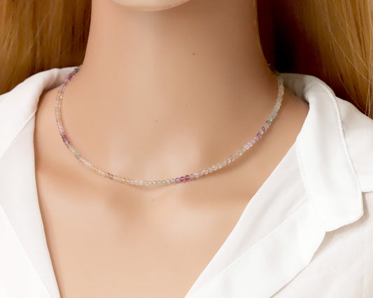 Gradient Fluorite 3mm Faceted Beaded Choker, Bracelet, Natural Gemstones