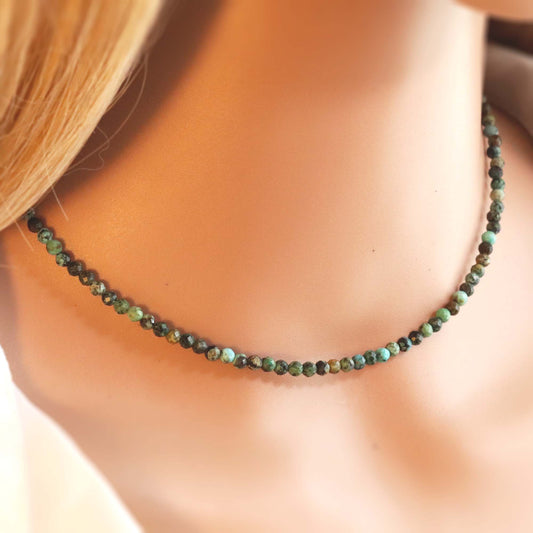 African Turquoise 3mm Faceted Beaded Choker, Bracelet, Natural Gemstones