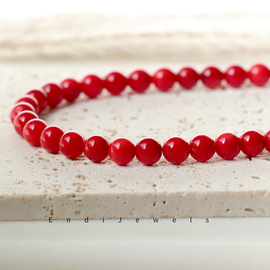 Red Coral 6mm Round Beaded Necklace, Bracelet, Natural Gemstones