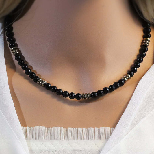 Black Onyx 6mm Round Beaded Choker, Bracelet, Natural Gemstones