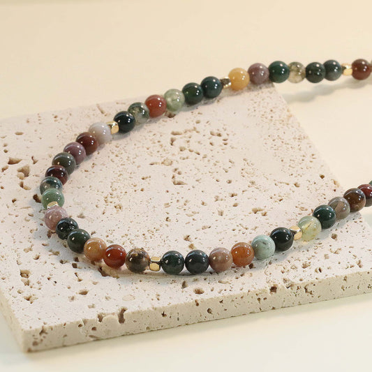 Brown Agate 6mm Round Beaded Choker, Bracelet, Natural Gemstones