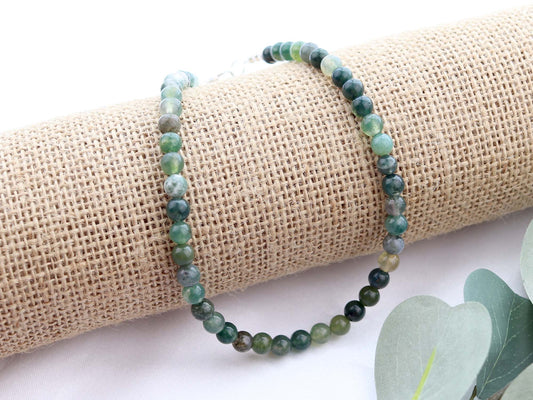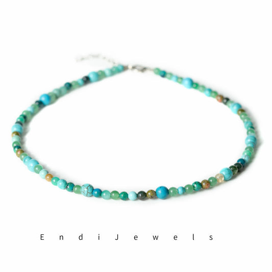 Green Gemstone Mixed 4mm Round Beaded Choker, Bracelet, Natural Gemstones