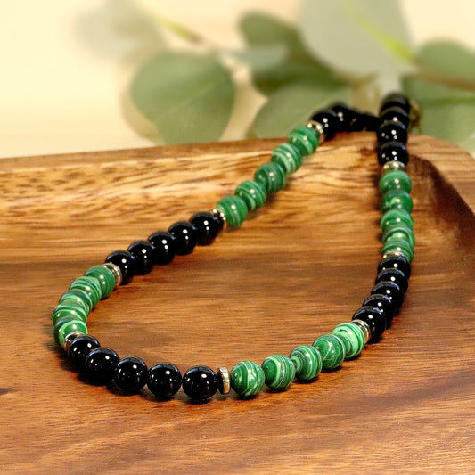 Malachite and Black Onyx 7mm Beaded Necklace, Bracelet, Natural Gemstones