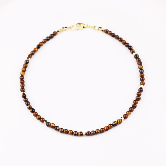 Red Tiger's Eye 4.5mm Round Beaded Choker, Bracelet, Natural Gemstones
