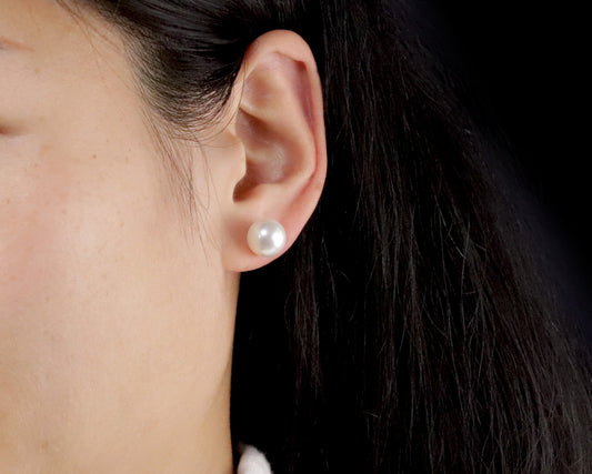 10mm Mother of Pearl Round Pearl Earrings, Large White Pearl Studs