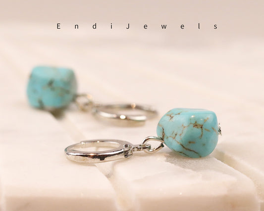 Blue Irregular Turquoise Stone Earrings, Natural Gemstone Drop Earrings