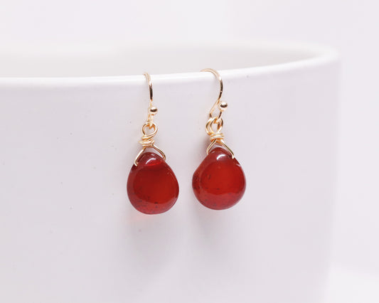 Natural Red Carnelian Teardrop-Shaped Drop Earrings, Genuine Gemstone Handmade Earrings