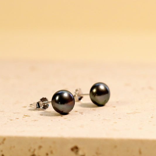 Black Freshwater 6mm Pearl Stud Earrings, Real Pearl Studs, Minimalist Style