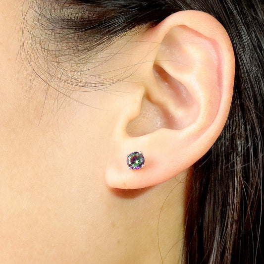 Black Mystic Cubic Zirconia Solitaire Stud Earrings Sterling Silver, Gemstone Earrings