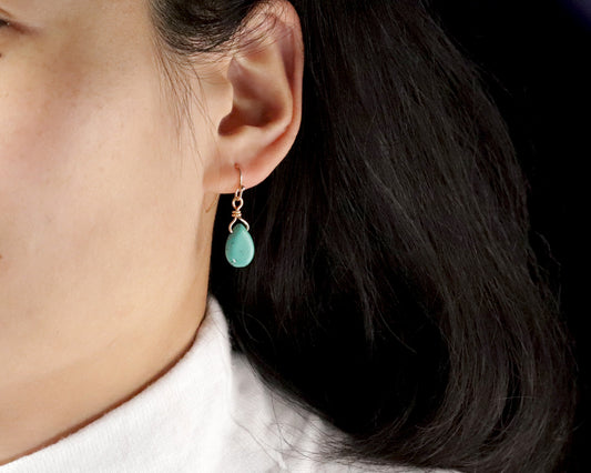 Natural Green Turquoise Teardrop-shaped Drop Earrings, Genuine Gemstones, Daily Earrings