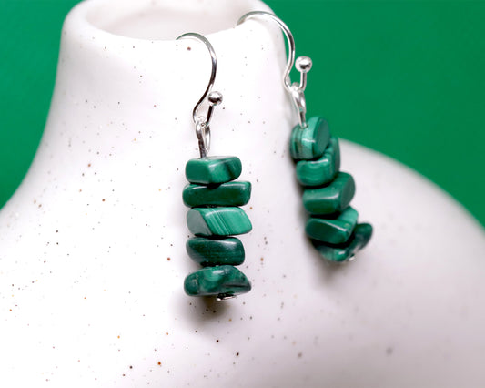 Natural Malachite Drop Earrings, Green Malachite Gemstone Chips Drop Dangle Earrings