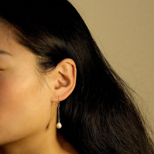 White Freshwater Pearl 8mm Oval-shaped Drop Dangle Earrings, 925 Sterling Silver, Daily Wearing