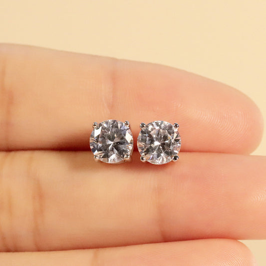 7mm Cubic Zirconia Stud Earrings in Sterling Silver, 925 Sterling Silver, Minimalist Style