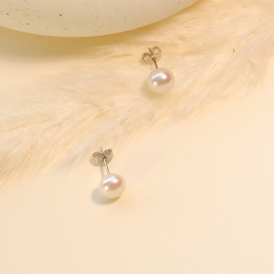 White Freshwater Pearl 8mm Beaded Studs, Minimalist Earrings for Daily Wearings, 925 Sterling Silver